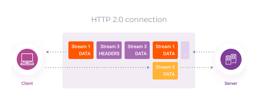 Dies ist einer der Hauptunterschiede zwischen HTTP/2 und früheren Versionen. Dadurch wurde es möglich, die Geschwindigkeit der Datenübertragung zu erhöhen.